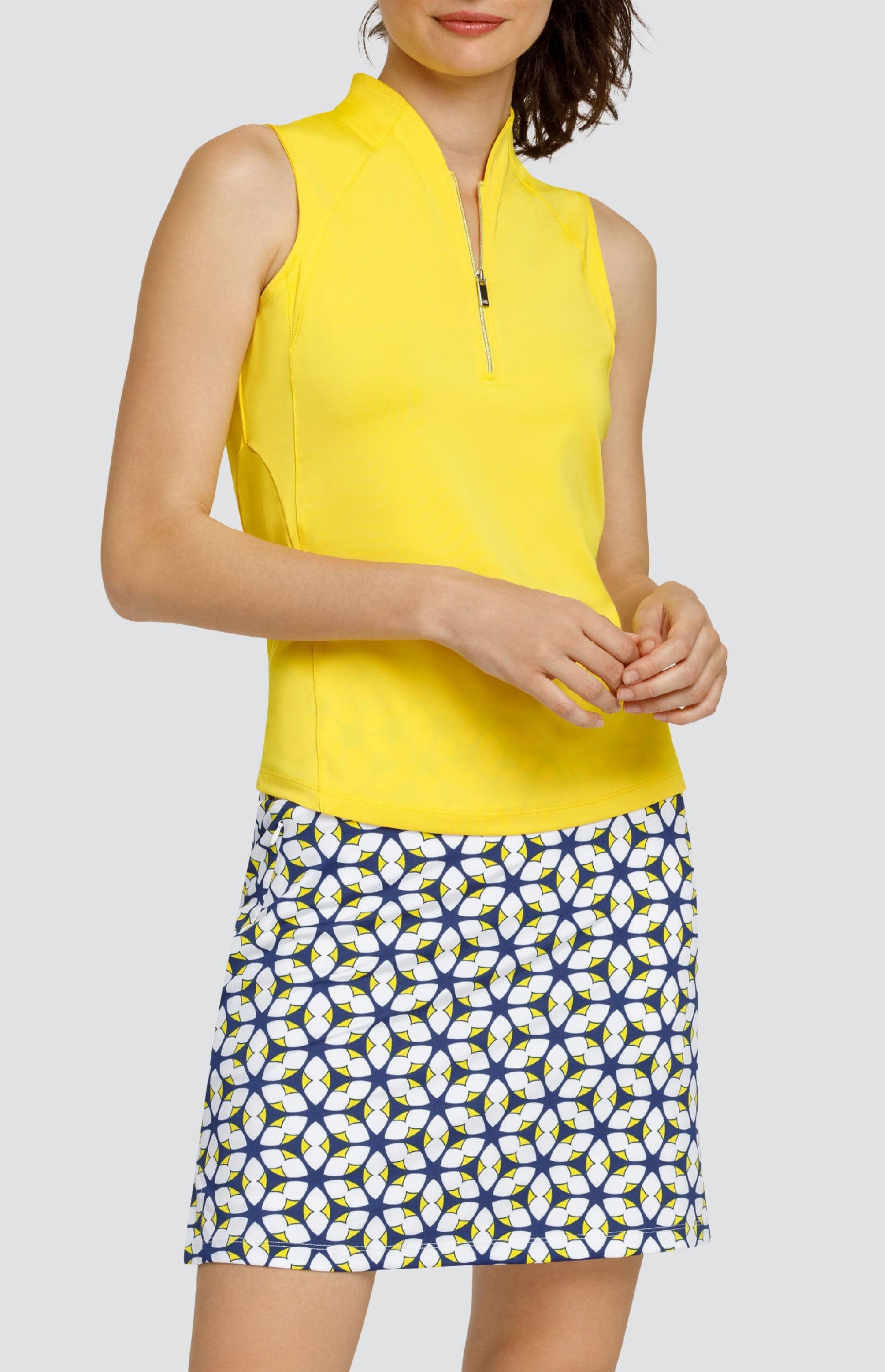 The Adira quarter-zip sleeveless golf top features a novelty collar, thoughtfully placed inserts, and a curved hem. Made with our wrinkle-resistant, moisture-wicking Performance Jersey fabric, it will continue to be a staple in your wardrobe wash after wash. And the UPF 50+ protective technology that is built into the fabric will give you peace of mind as you play under the sun’s harmful rays.