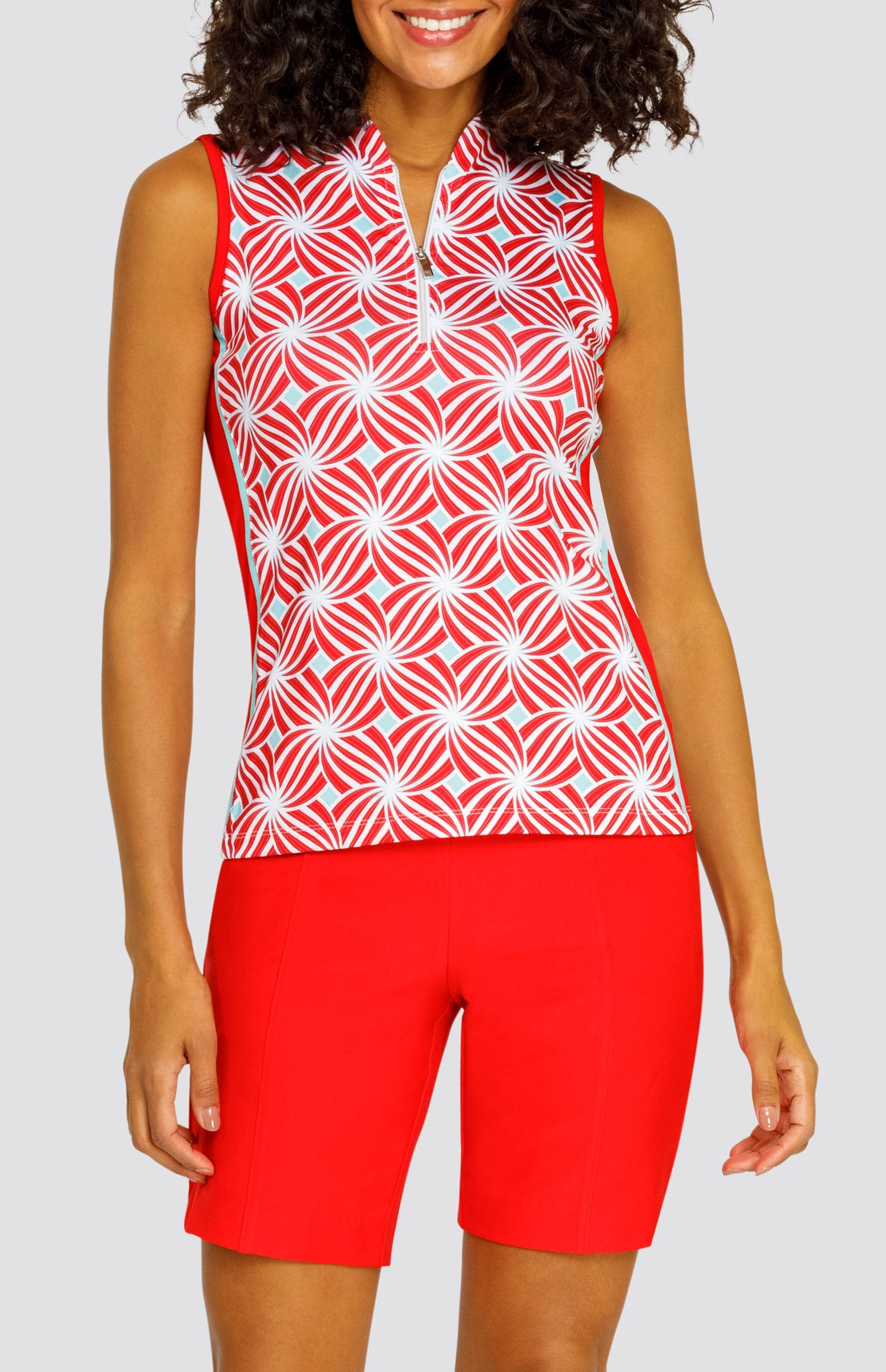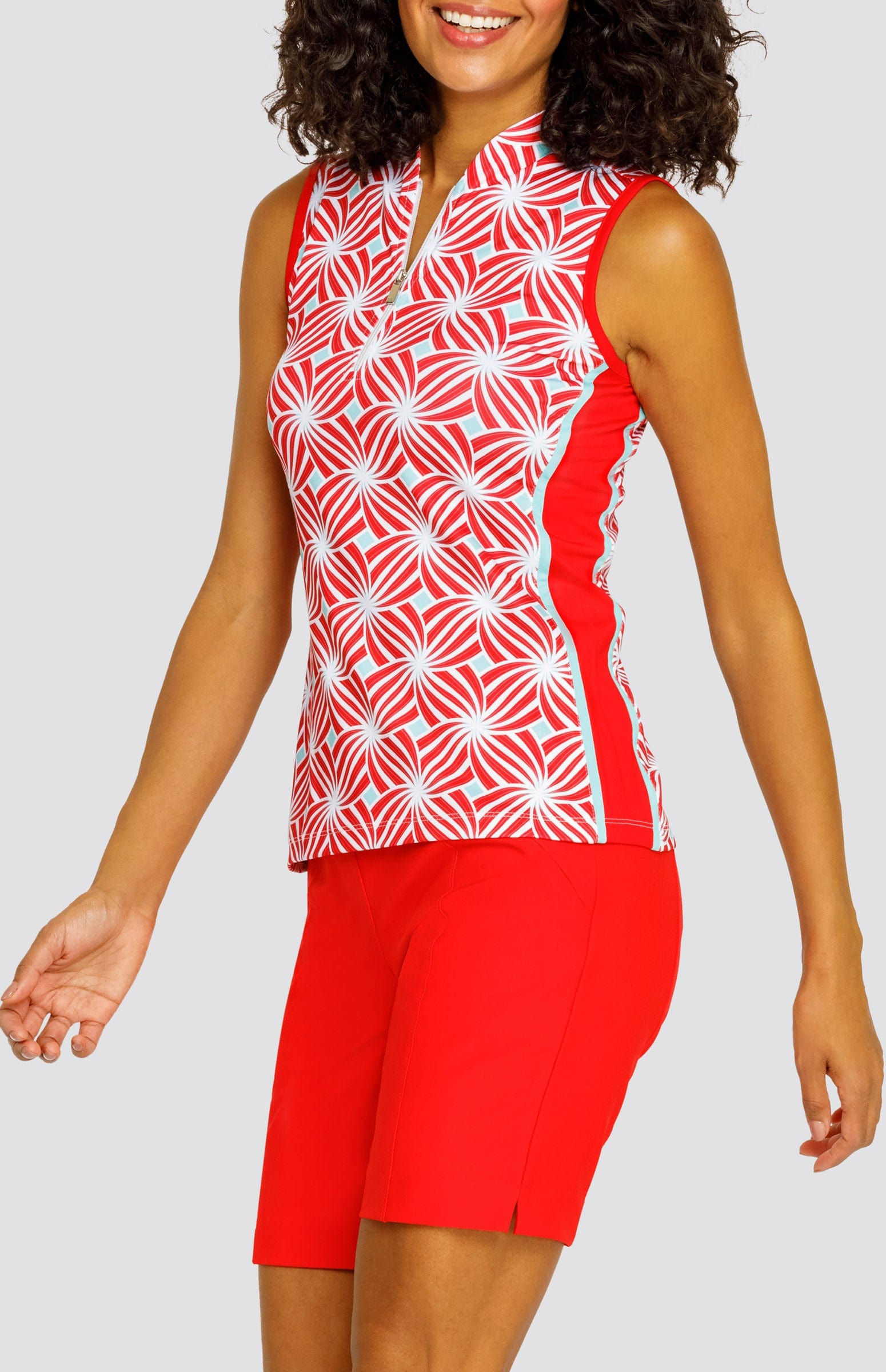 Simple lines will captivate with our Annelise sleeveless golf top, featuring a mandarin funnel neck and thoughtfully placed inserts. Made with our wrinkle-resistant, moisture-wicking Performance Jersey fabric, it will continue to be a staple in your wardrobe wash after wash. And the UPF 50+ protective technology that is built-in to the fabric will give you peace of mind as you play under the sun’s harmful rays.