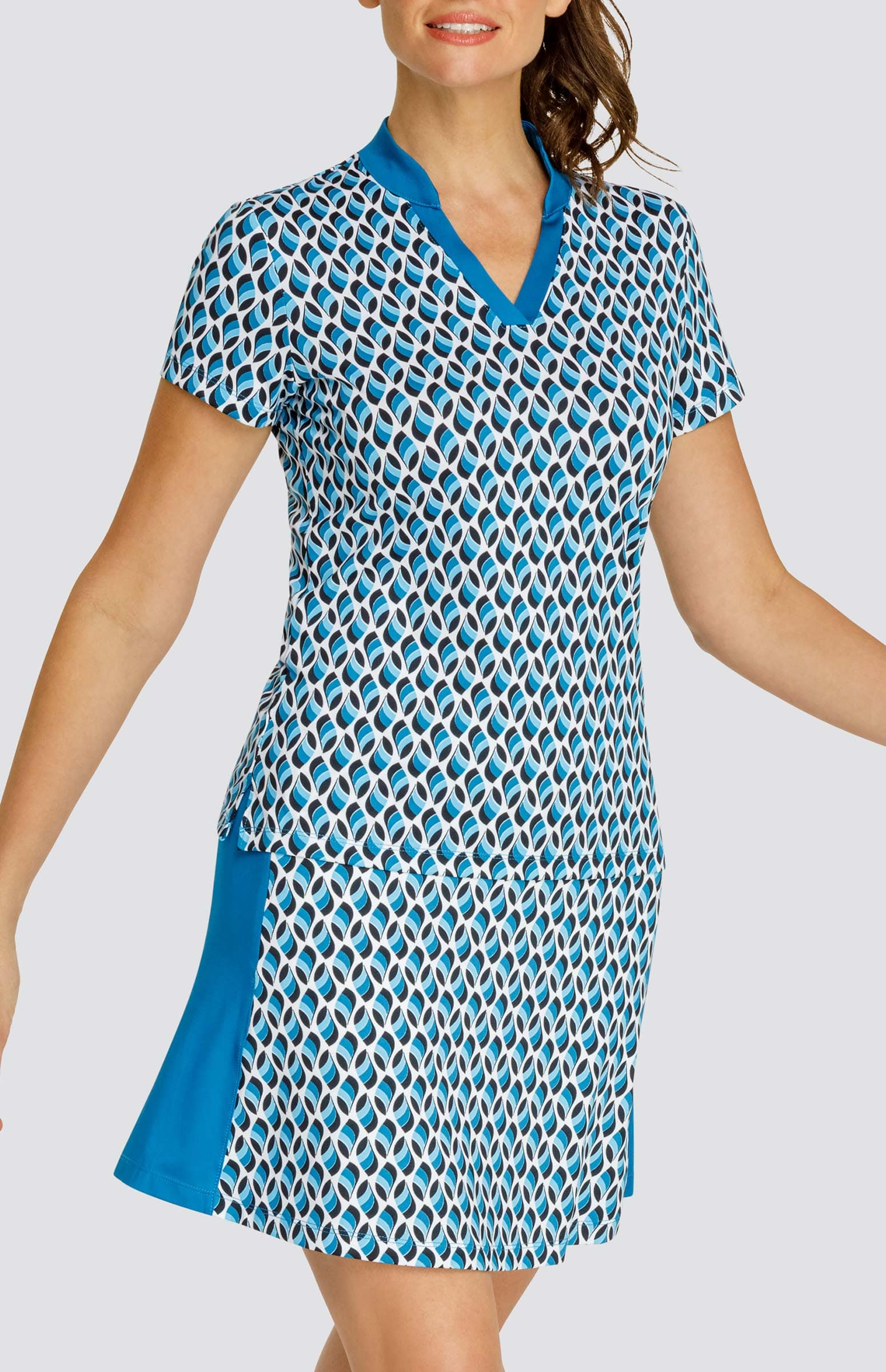 Bring on the effortless style with the short sleeve Atha Top, featuring an open mini mock neck collar and side vents. Made with our wrinkle-resistant, moisture-wicking Performance Jersey fabric, it will continue to be a staple in your wardrobe wash after wash. And the UPF 50+ protective technology that is built-in to the fabric will give you peace of mind as you play under the sun’s harmful rays.