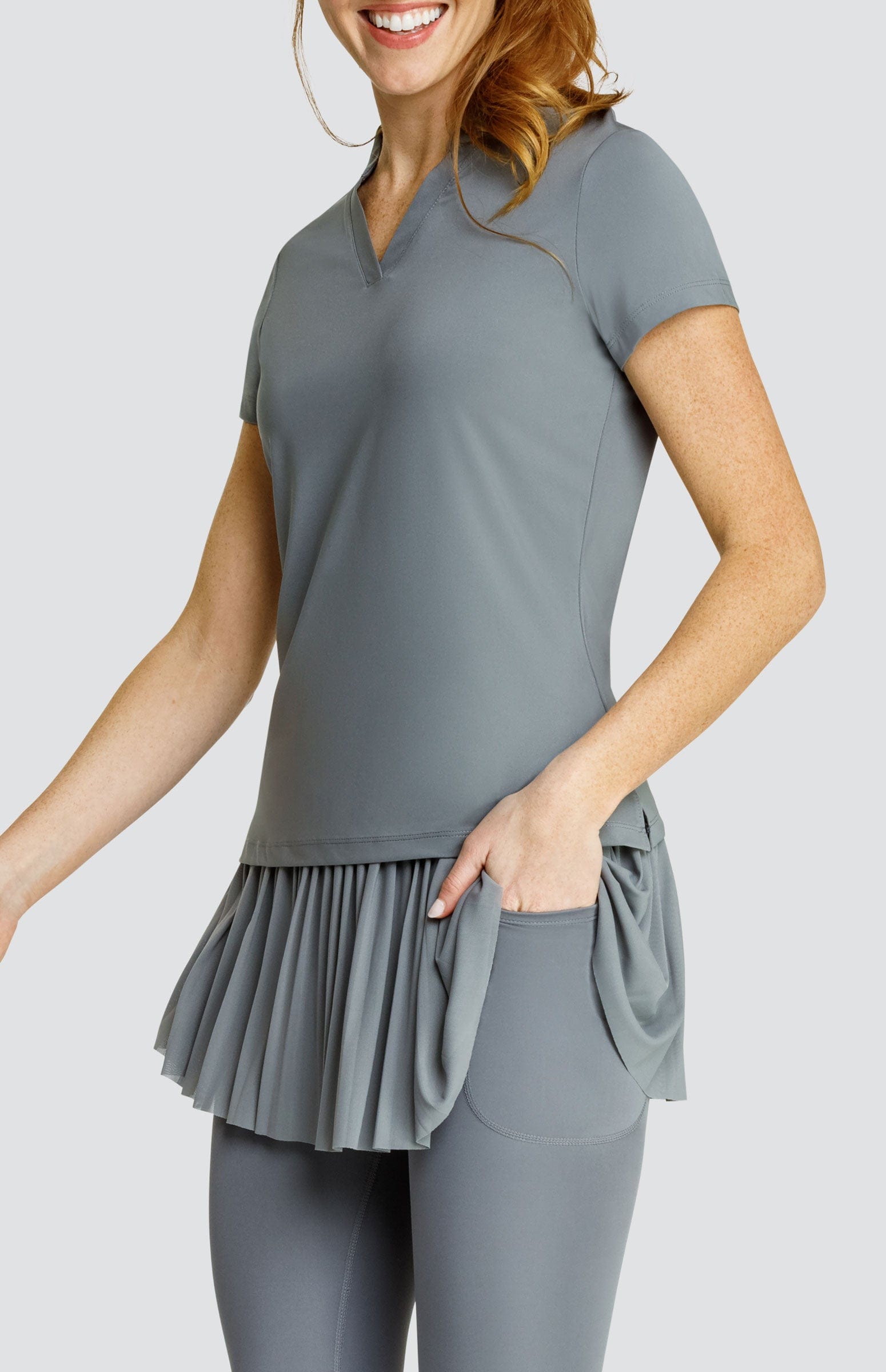 Keep cool and collected in the Atha short sleeve top, featuring an open mini mock neck, 6.5″ sleeves, and side vents. Made with our soft and luxurious Cloud Jersey fabric, it will continue to be a staple in your wardrobe wash after wash. And the UPF 50+ protective technology that is built-in to the fabric will give you peace of mind as you play under the sun’s harmful rays.