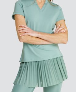 Keep cool and collected in the Atha short sleeve top, featuring an open mini mock neck, 6.5″ sleeves, and side vents. Made with our soft and luxurious Cloud Jersey fabric, it will continue to be a staple in your wardrobe wash after wash. And the UPF 50+ protective technology that is built-in to the fabric will give you peace of mind as you play under the sun’s harmful rays.