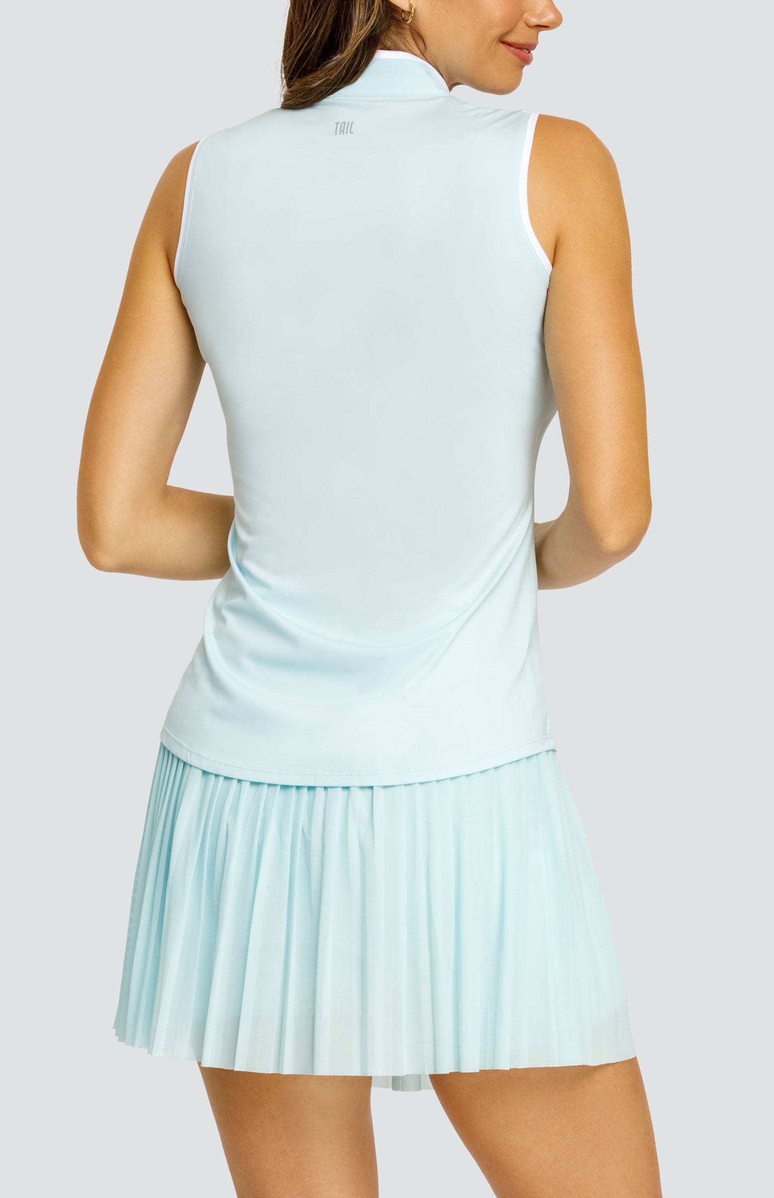 Style meets simplicity in the Coquette sleeveless top, featuring an open V-mini mock neck, elegant chalk piping accents, a high-low hemline, and vents on shifted side seams. Made with our wrinkle-resistant, moisture-wicking Impact Jersey fabric, it will continue to be a staple in your wardrobe wash after wash. And the UPF 50+ protective technology that is built-in to the fabric will give you peace of mind as you play under the sun’s harmful rays.
