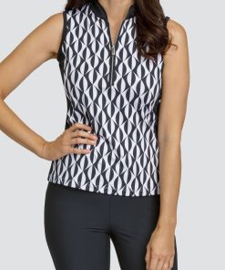 - Quarter Zip Sleeveless Top with Mandarin Collar and Inserts