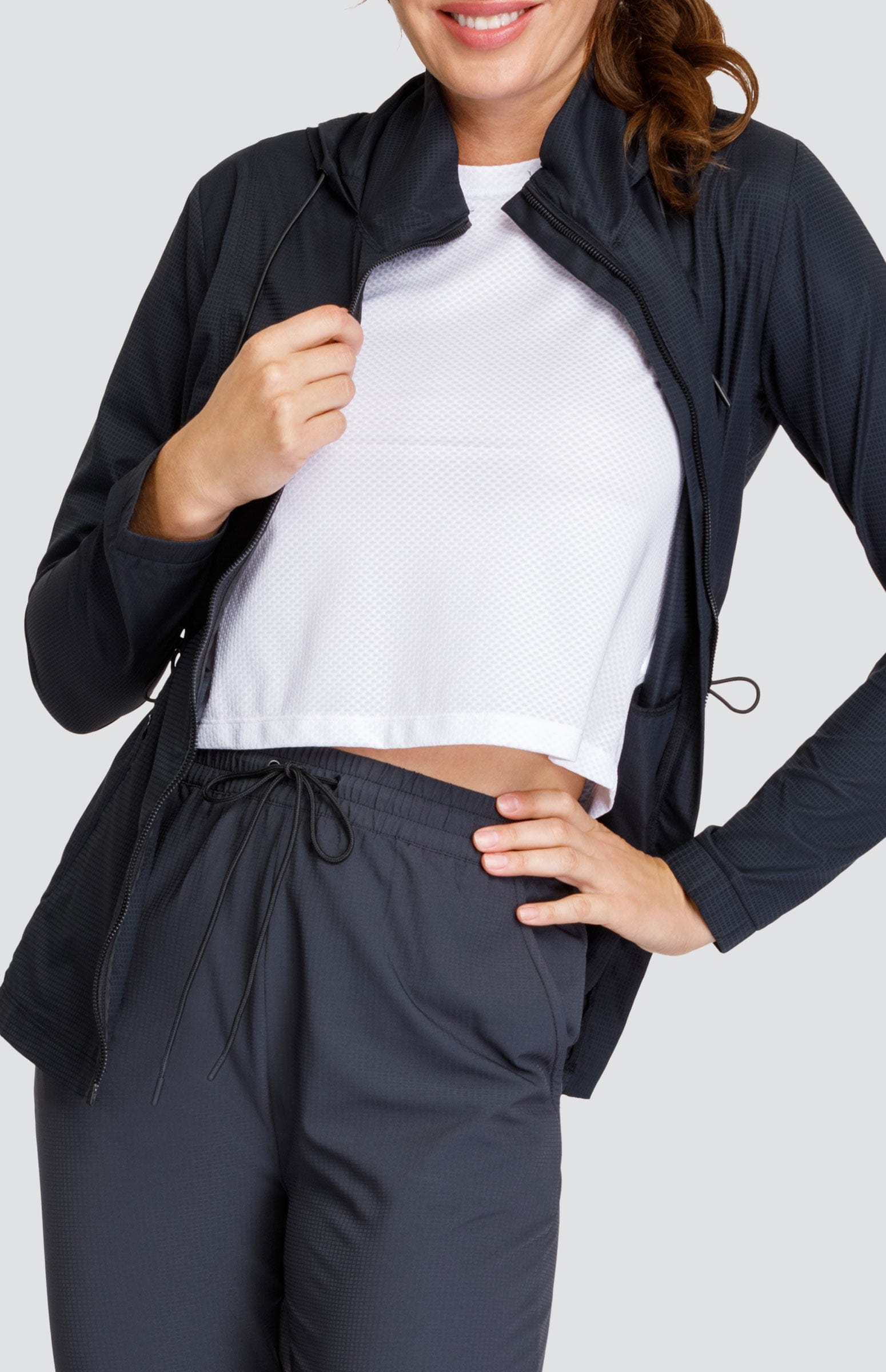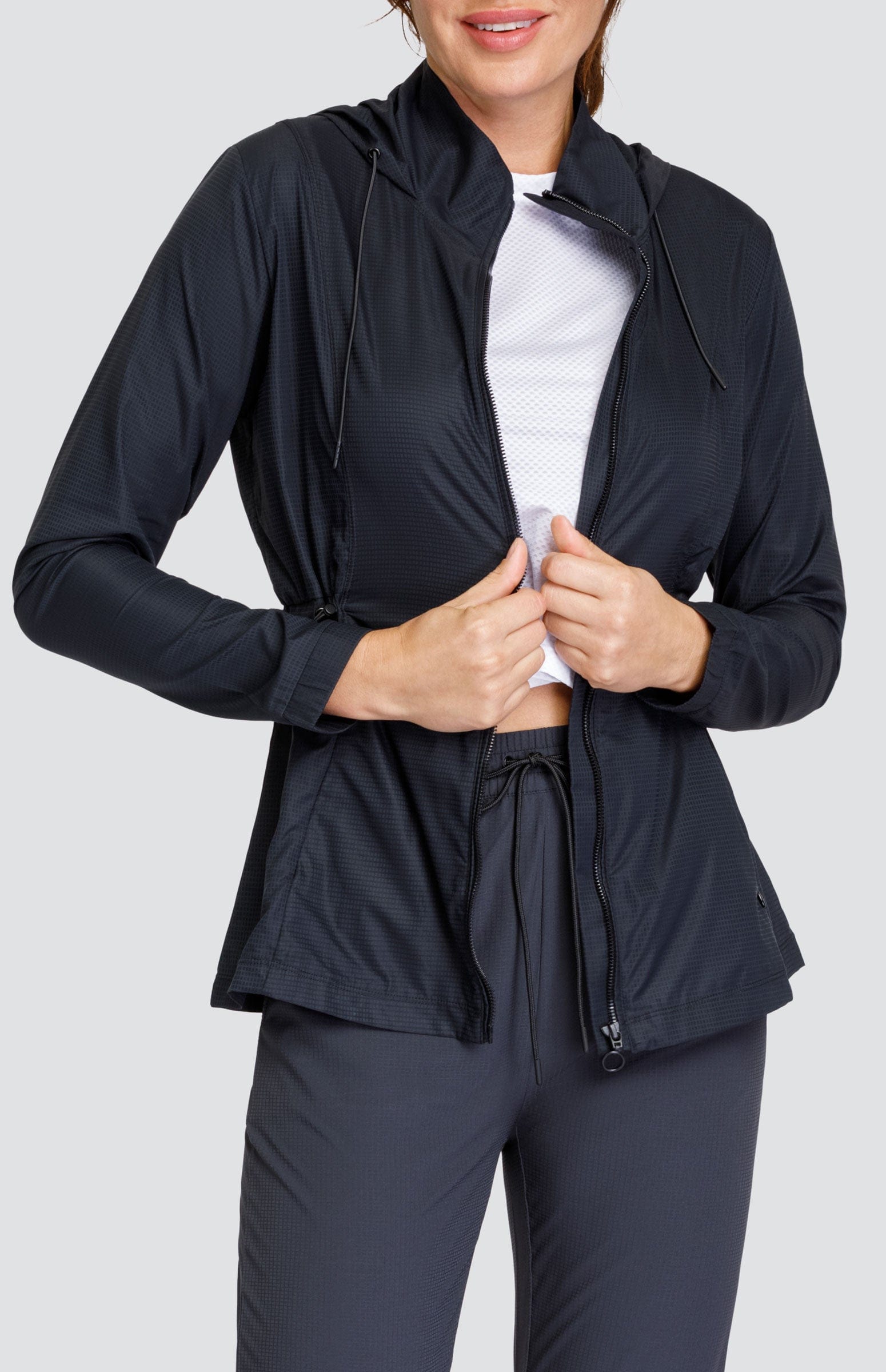 From our Tail Active collection. Our Nola Jacket will keep you dry and covered! Made from lightweight, water-resistant rip-stop material with a drawstring waist and hood. Including zipper pockets for carrying all your game accessories.