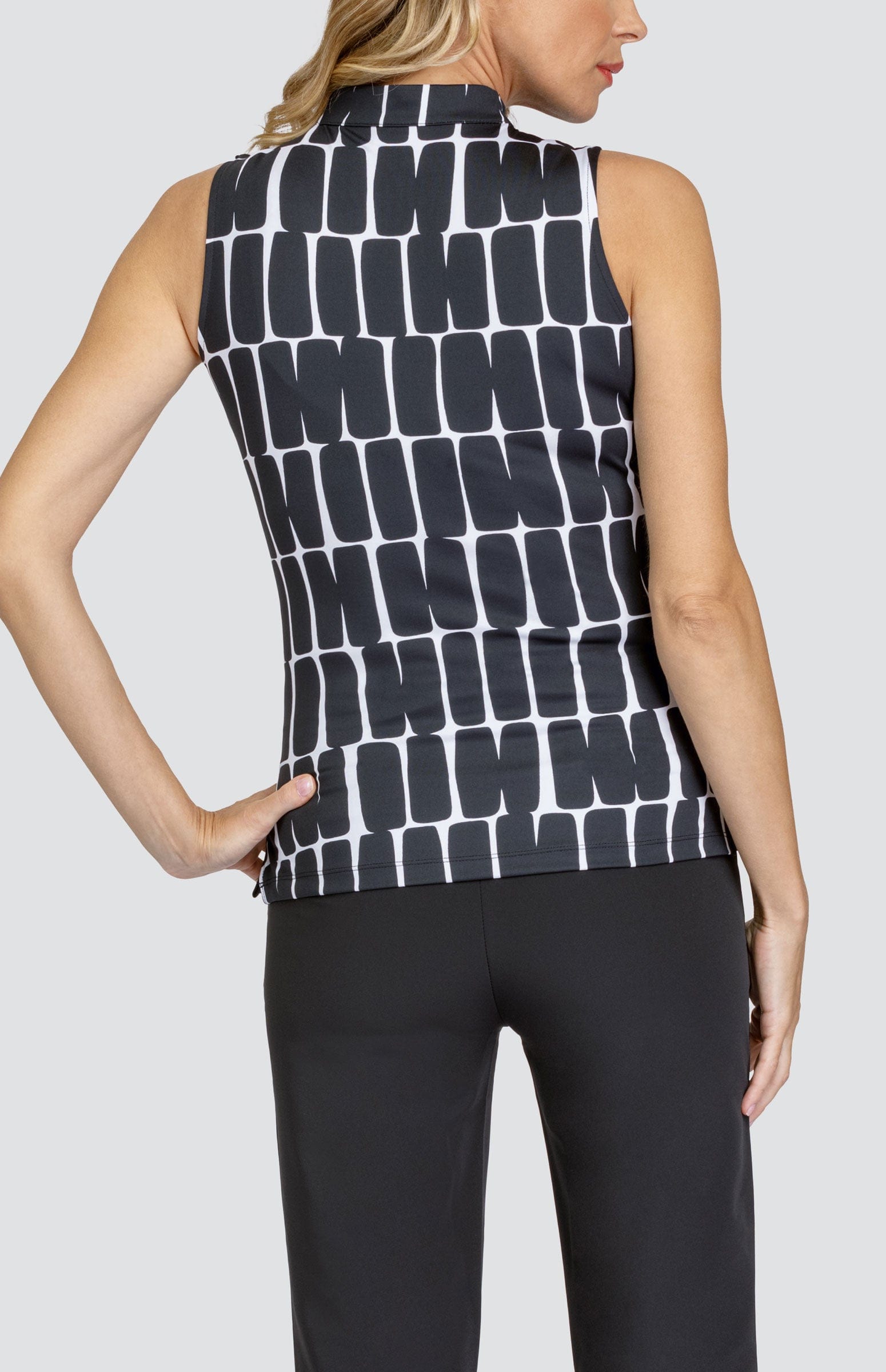 - Quarter Zip Sleeveless Top with Funnel Neck and Side Vents