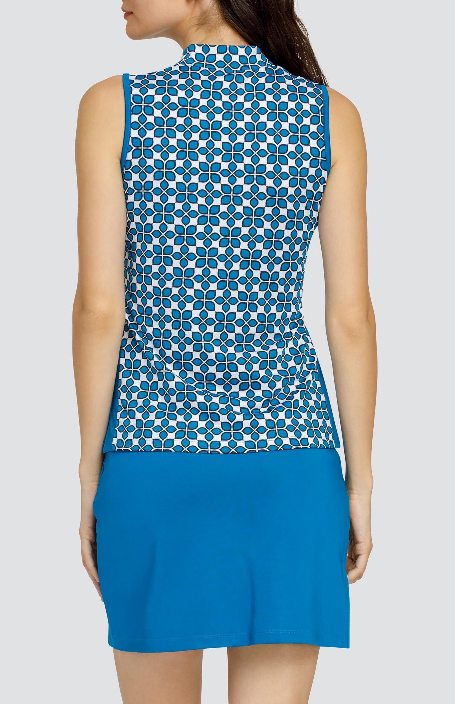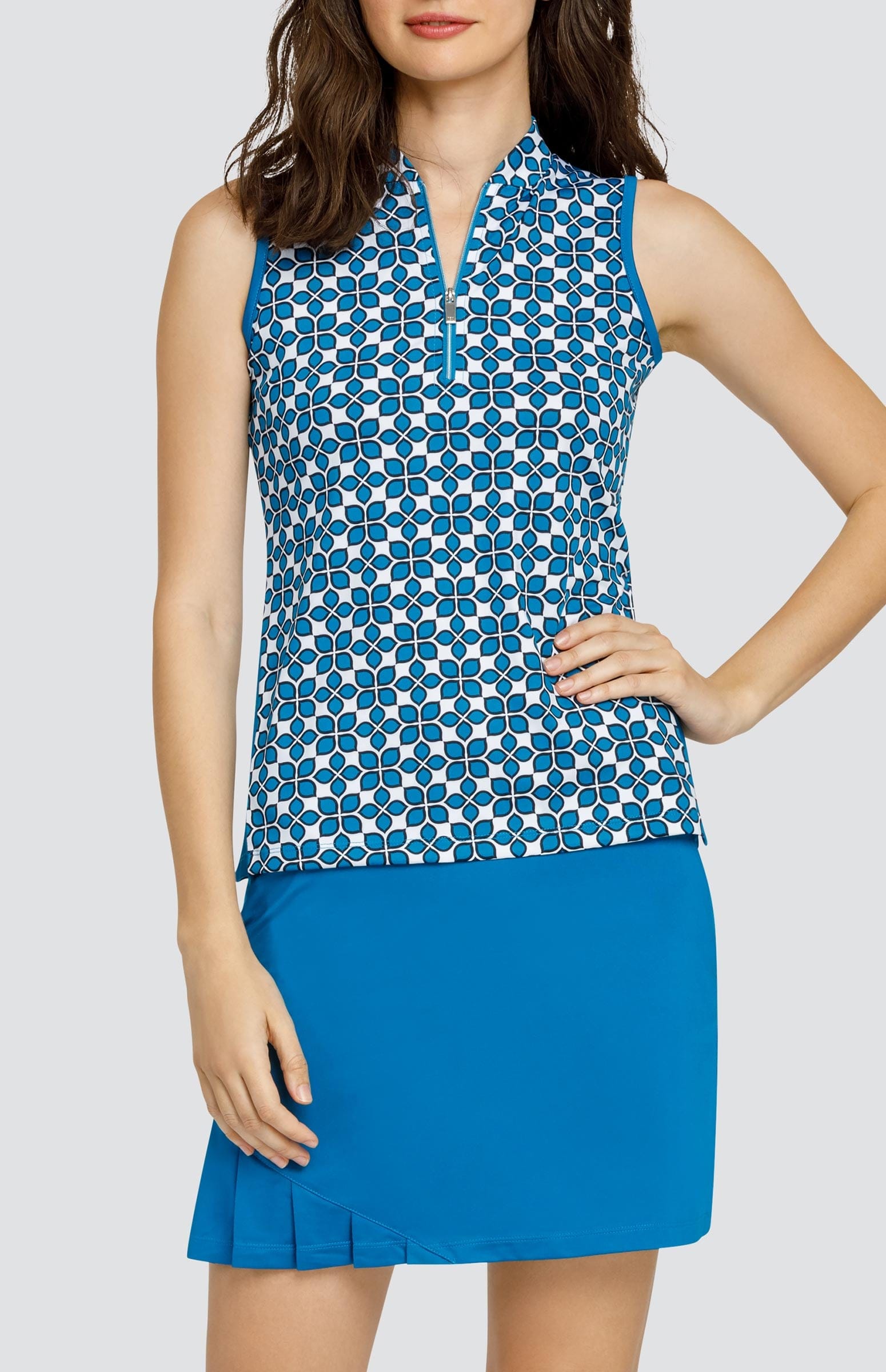 - Quarter-zip sleeveless top with V-mini mock neck, inserts, and vents