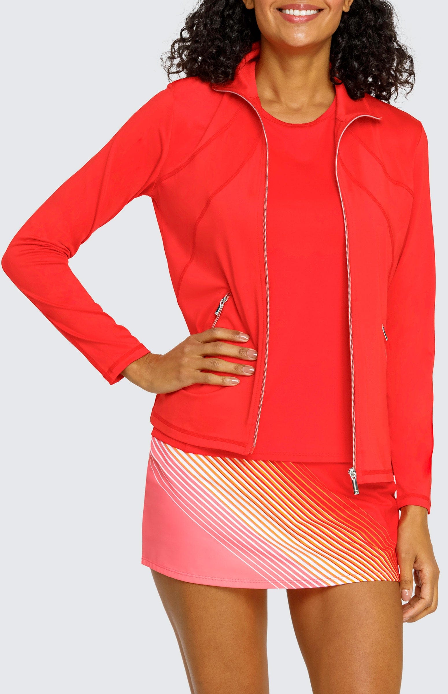 From our Citrus Sunrise Tennis Collection. Brighten everyone’s day in our Strawberry Pink and Firefly collection and light up the court with our radiant prints.