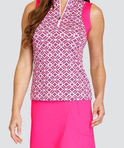 From our Luxuriant Labyrinth collection. This sleeveless quarter-zip golf top features a funnel neck and contrast armhole inserts. Performance Jersey fabric is moisture wicking and will keep you dry and cool.